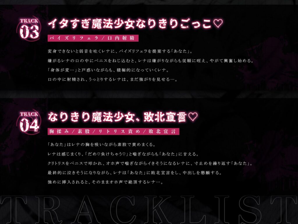 なりきり魔法少女、尊厳破壊ハメ地獄♪〜いじめっ子レナちゃんを催●調教、イタすぎ魔法少女の敗北ごっこ♪〜(KU100マイク収録作品)