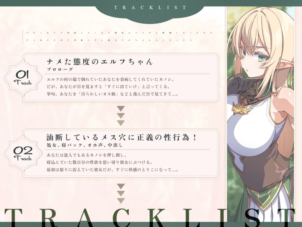 つきっきりで看病してくれた爆乳エルフが人間嫌いだったので、チン負けさせて可愛いデレ嫁オナホちゃんにしたった♪(KU100マイク収録作品)